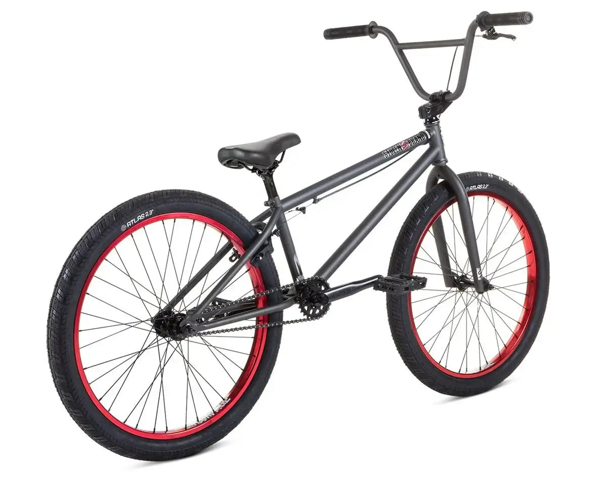 The Stolen Saint 24” combines the look and geometry of a BMX bike with the cruising ability of a cruiser. The full chromoly frame, fork and bars keep this thing strong and true to it's BMX core. The all sealed bearings keep this thing rolling smooth. Topped off with 24” Stolen Rampage rims and Stolen MOB tubular cranks, this bike is designed to fit riders around 5'9" and up.